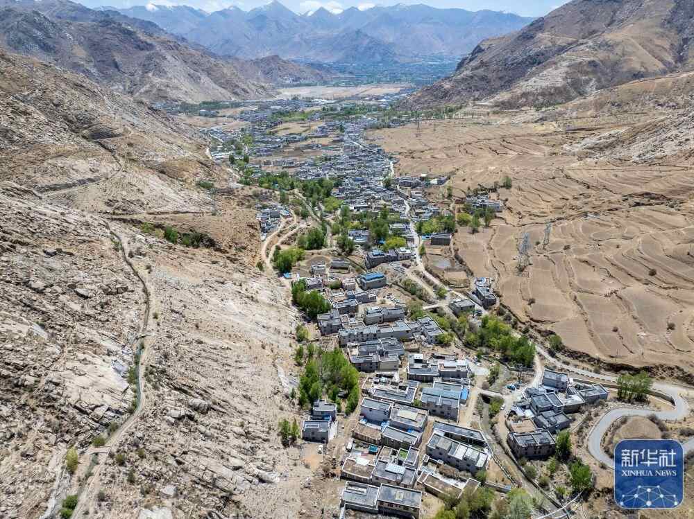 ↑ 空中俯瞰维巴村(无人机照片,4月24日摄)。