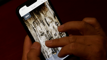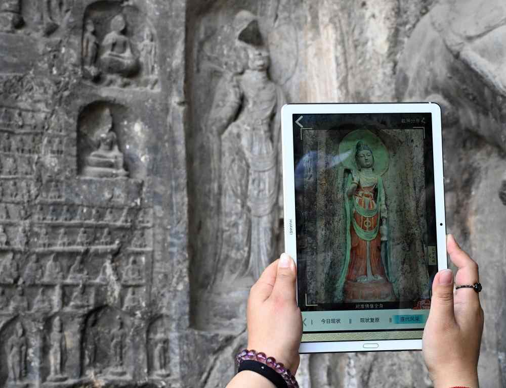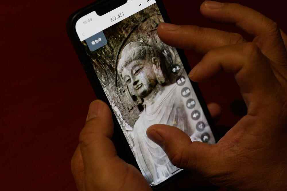 4月17日,游客使用“云上龙门”手机小程序游览龙门石窟。