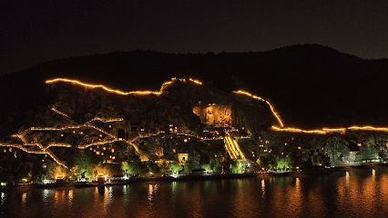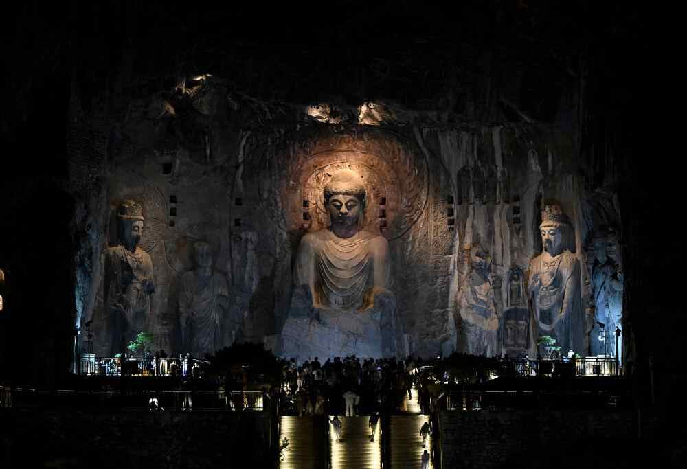 4月24日,游客夜游龙门石窟。