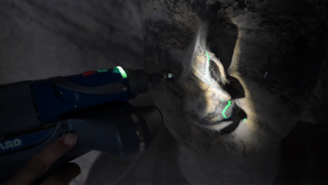 4月9日,武汉大学文化遗产智能计算实验室团队成员在魏字洞使用关节臂扫描仪对佛像进行数字化扫描。
