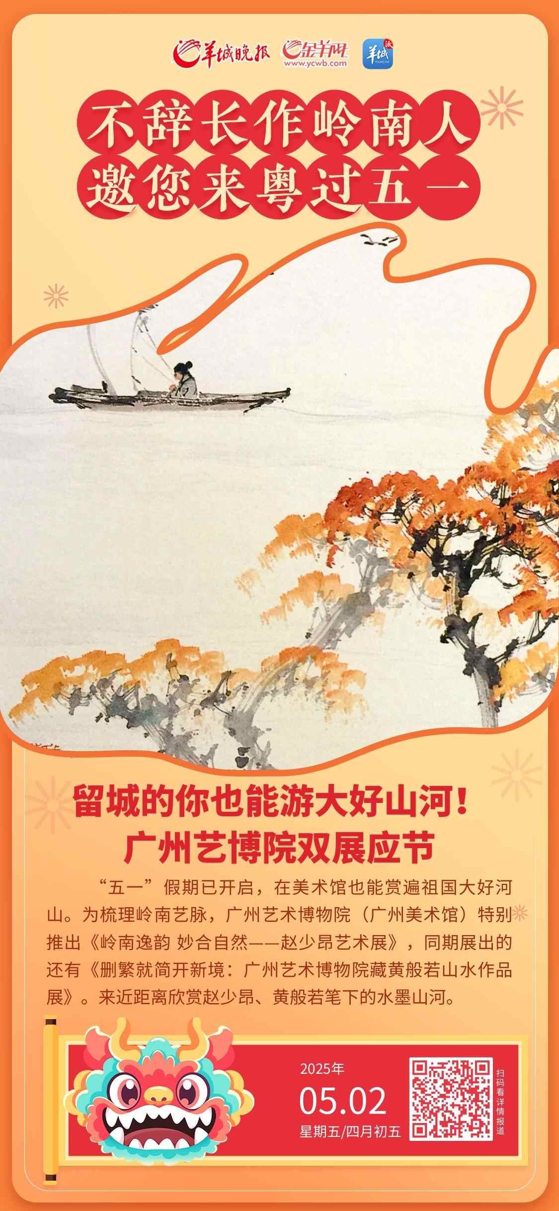 “五一”假期已开启,快来广州艺术博物院(广州美术馆),近距离欣赏赵少昂、黄般若笔下的水墨山河,或许你会发现,在美术馆也能赏遍祖国大好河山。