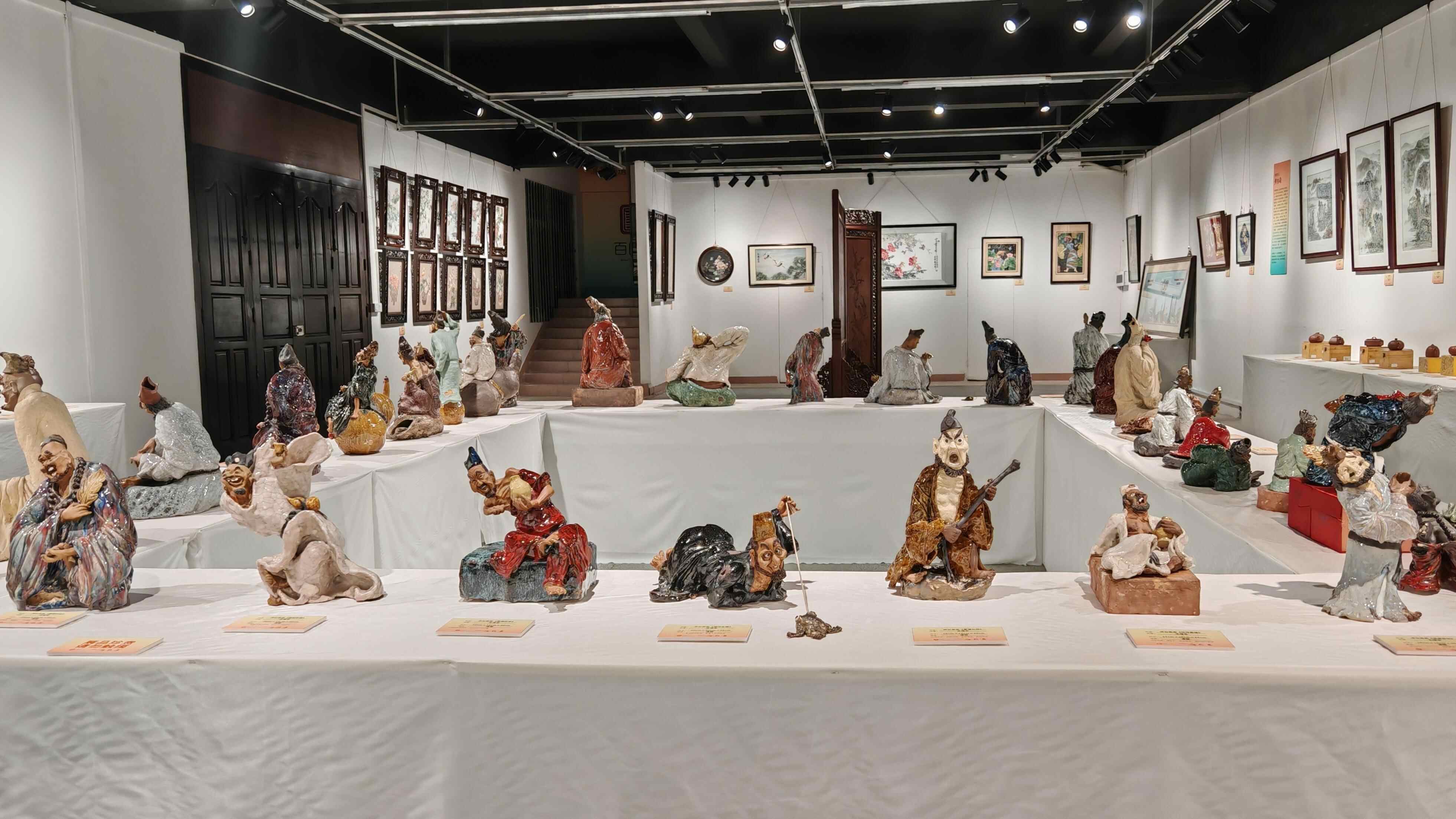 分为“王增丰·笑塑人生”“刘文·清逸高古”“黄伟雄·绣花男人”三个篇章,展出瓷板画、瓷瓶、紫砂壶、漫塑、珠绣等艺术精品超百件。