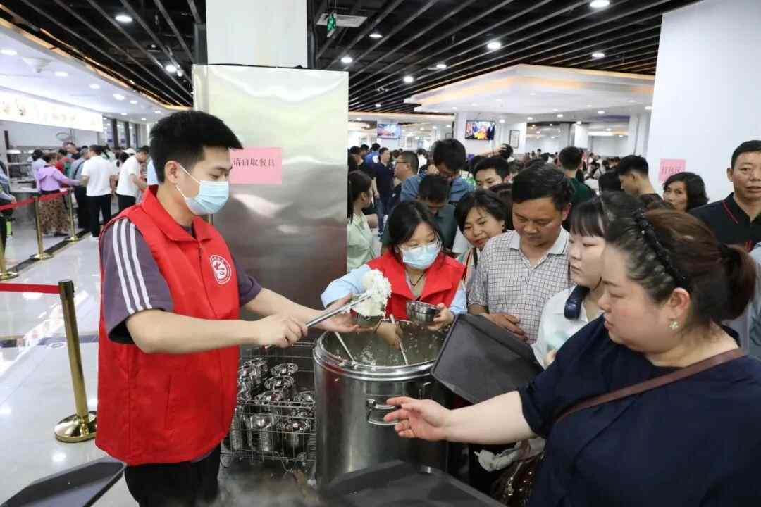 连免费加饭的餐盘都没了,工作人员说,每次饭一端上来就秒空,饭碗都不够用了。前来吃饭的一位大姐高兴地说,自己抢到了最后两碗。
