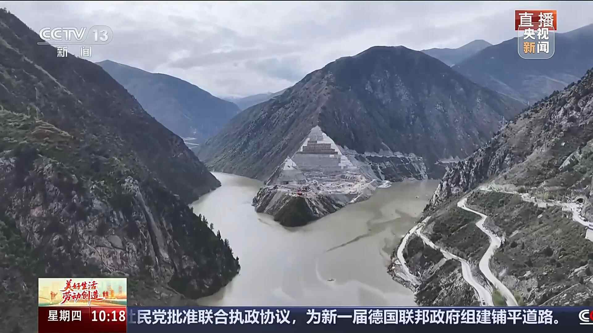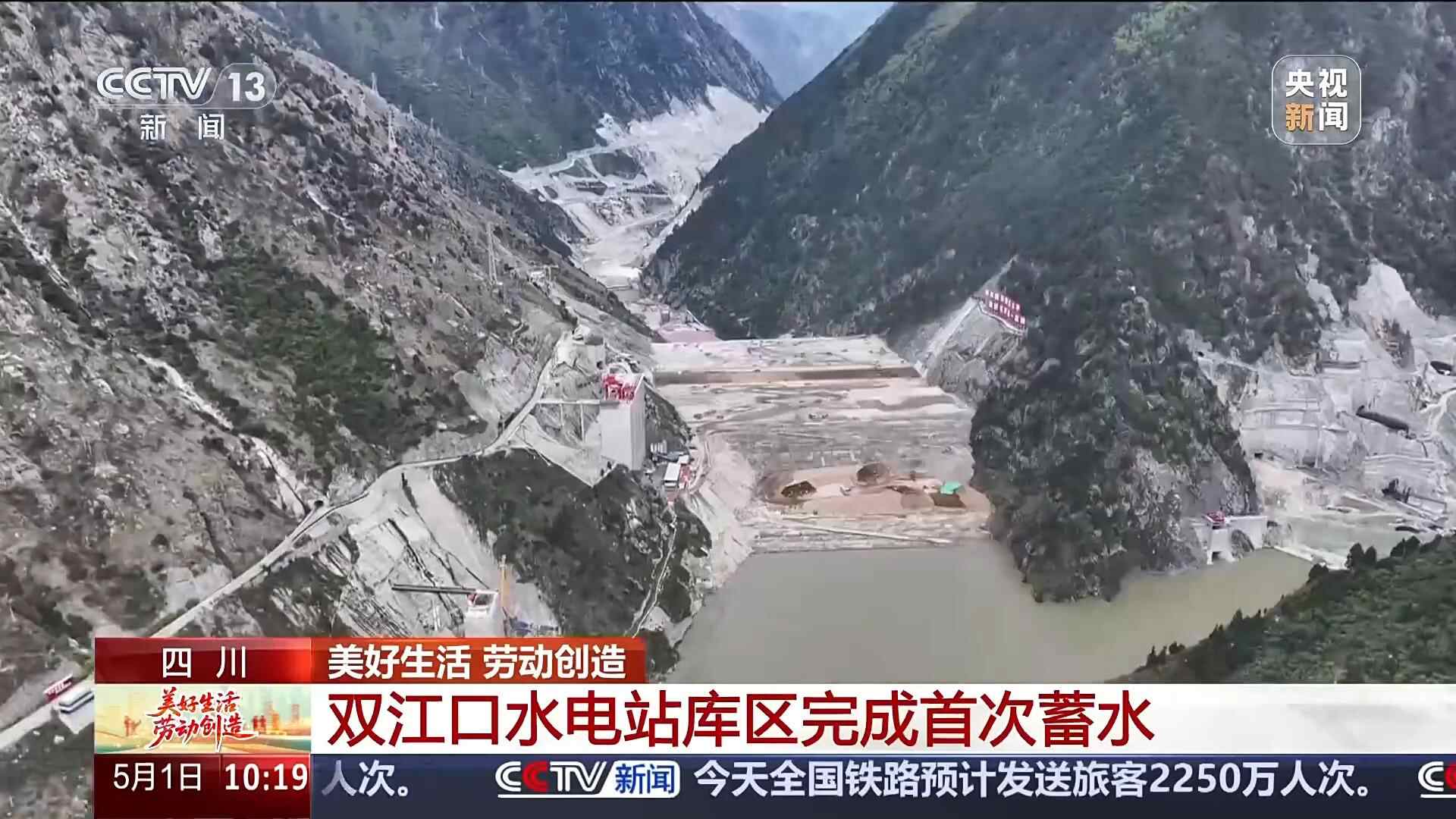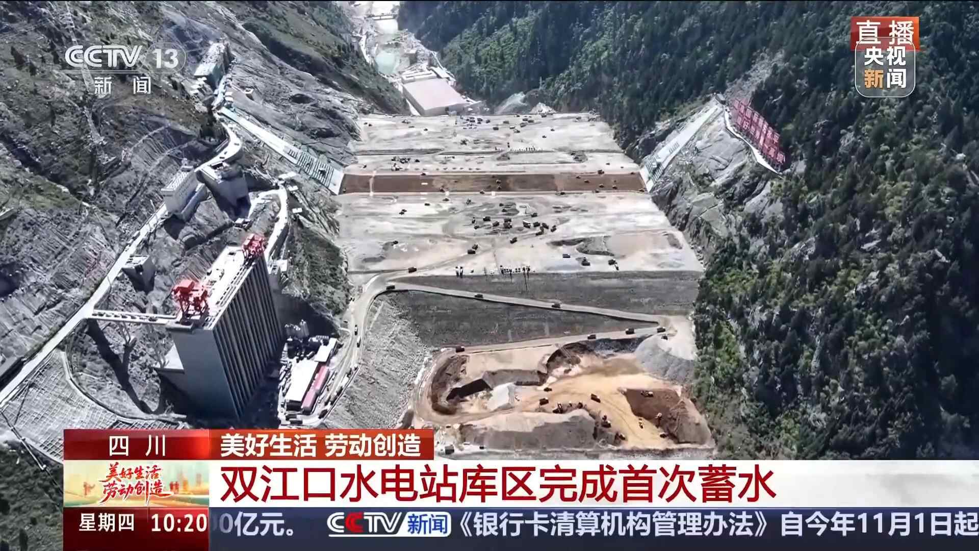 总台央视记者 古峻岭:首先先来揭晓一下它名字的由来,双江口,顾名思义它是有两条支流汇合而成。往水电站的上游来看,左边这条叫绰斯甲河、右边这条的名字是脚木足河。这两条河流的水量充沛,汇合在一起后,将为双江口水电站提供充沛的水源,源源不断地发出清洁的绿电。