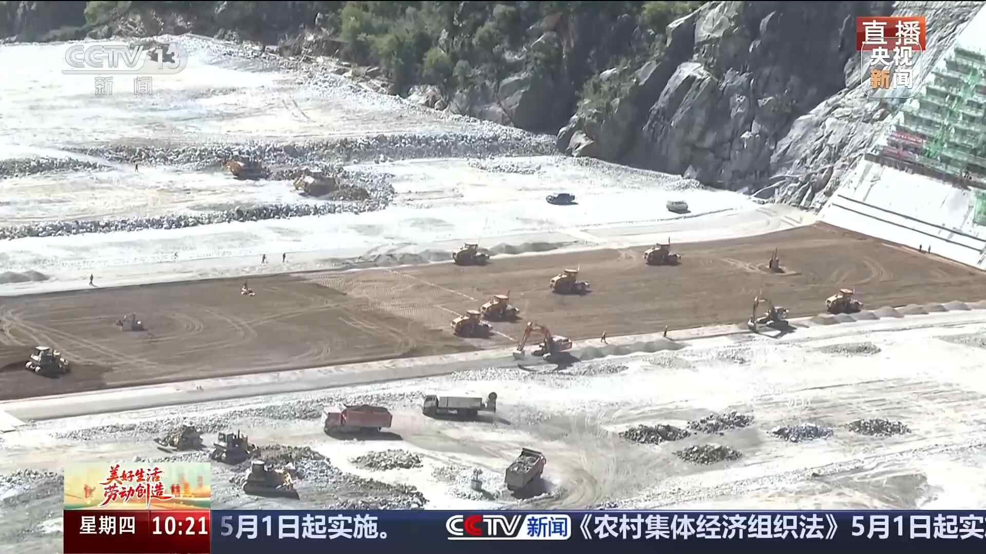 再看正在建设中的大坝,它的设计高度315米,是世界最高坝。现在它已经建设到了205米,还将在往上修筑110米。这样一个世界级大坝,填筑土石方总量超4600万立方米,如果把这些土石,砌成1米见方的墙,可绕地球赤道一圈。
