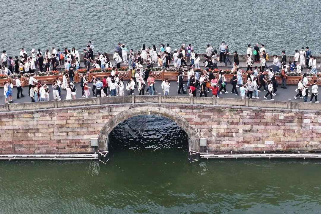 5月1日上午10点,杭州的西湖断桥,也已开启“大流量”模式。