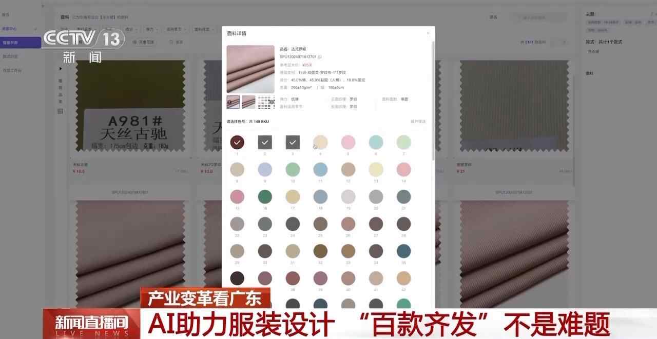 当一块布料在中大布匹交易市场被AI精准识别,它的旅程才刚刚开始。在距离布匹市场仅仅3公里的一家广州时尚快反基地,曾经受困于找布难、改版慢的服装设计,如今在AI助手的帮助下,已经实现了“百款齐发”。