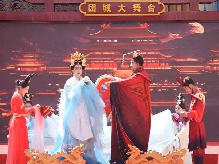 这是5月1日和田团城开城仪式上沉浸式舞剧《西巡传说》的演出现场。