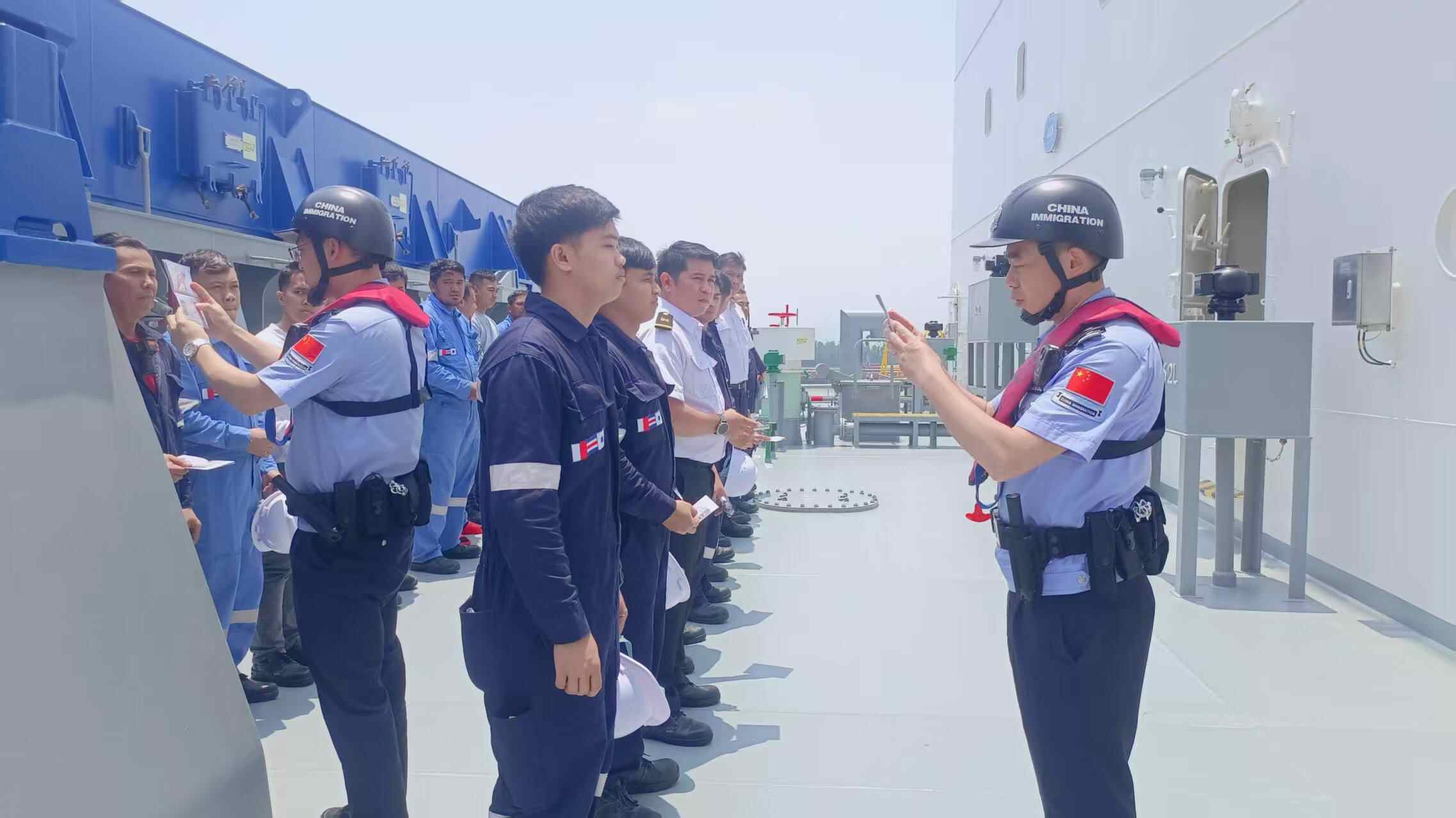 “这艘船是在交付当天就出境的新造船舶之一,从靠泊到离港出境,历时3小时,江门边检站联合联检单位提供了周到的靠前服务,迅速办理了通关手续,极大地节省了人力、时间和成本,为船舶公司带来了显著的效益。”中外运华南有限公司江门分公司船舶代理苏景校说。