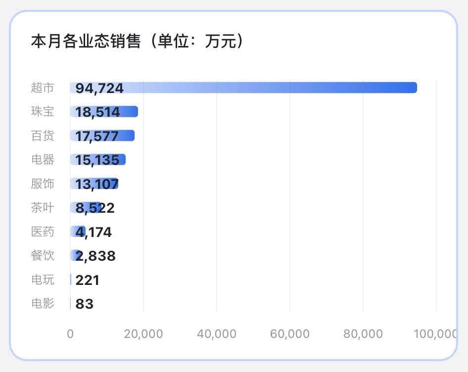 据大河财立方,记者梳理发现,4月份,胖东来超市、珠宝、百货三大业态领跑销售,分别贡献9.47亿元、1.85亿元和1.76亿元,占当月总销售额的七成以上。电器、服饰、茶叶等生活消费类业态紧随其后,分别实现1.51亿元、1.31亿元和0.85亿元销售额。从门店维度看,时代广场店以4.43亿元的超强贡献力,持续领跑;天使城店和大胖店以超2亿元的销售额位居第二、第三位。