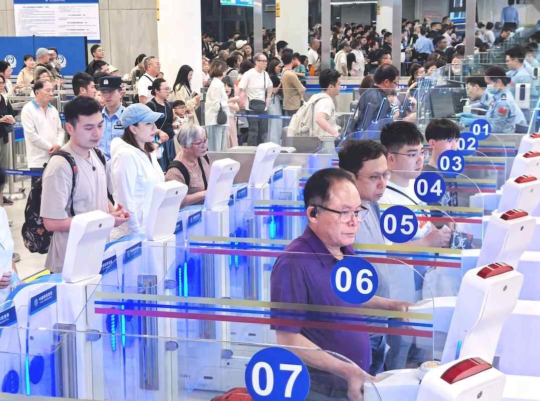 记者从深圳皇岗出入境边防检查站了解到,今年“五一”假期,受“离境退税”“免签新政”“春假亲子游”等因素叠加影响,深圳皇岗、福田口岸迎来双向出入境客流高峰。据深圳出入境边防检查总站统计,4月30日至5月1日18时,皇岗边检站共查验经皇岗、福田口岸的出入境旅客超36万人次,车辆2万辆次,同比分别增长18.36%,15.73%。