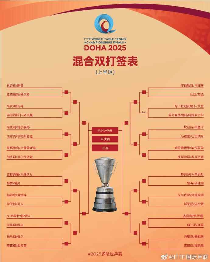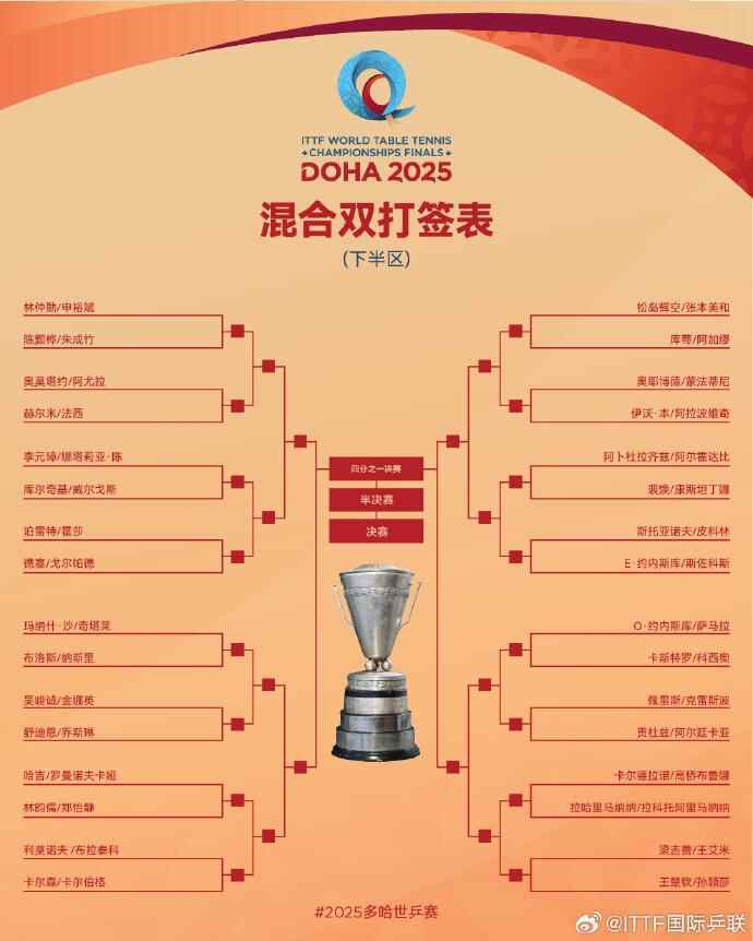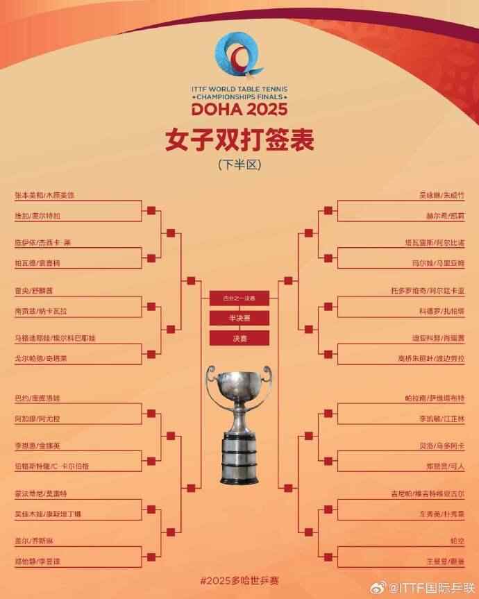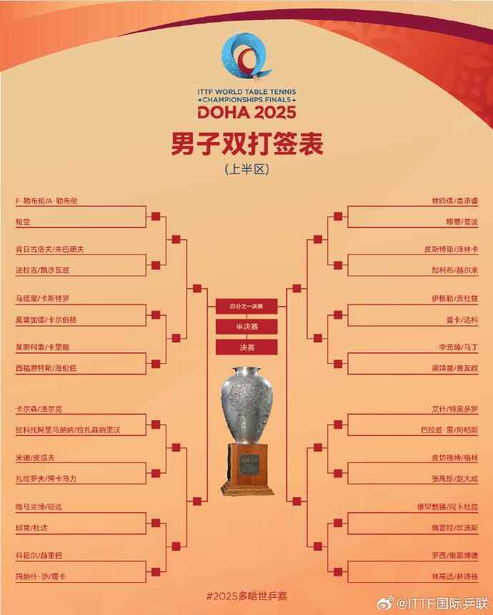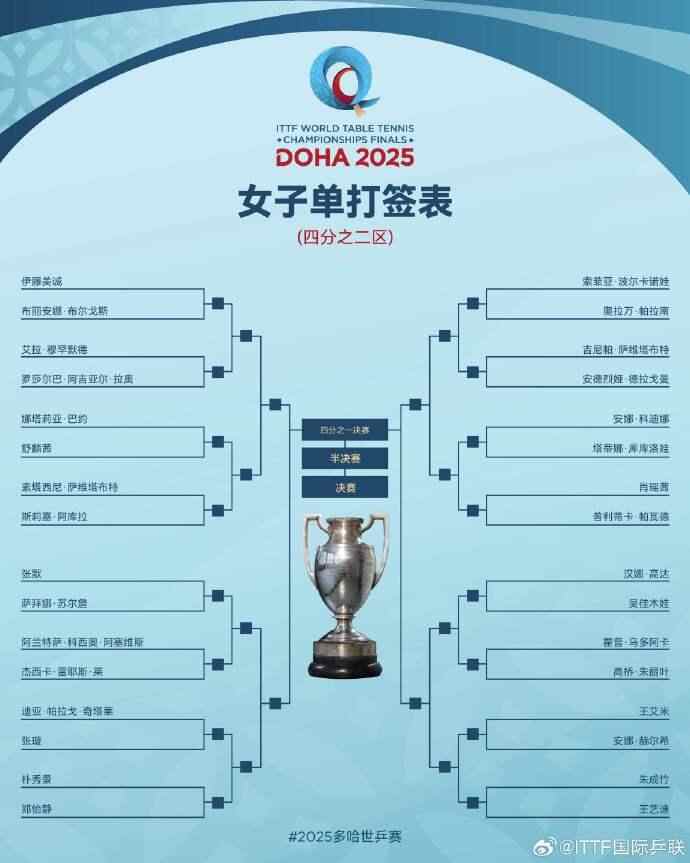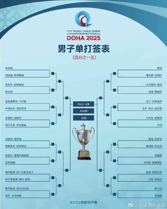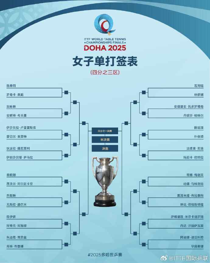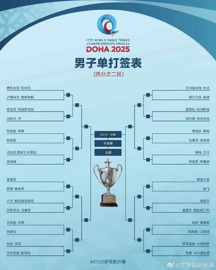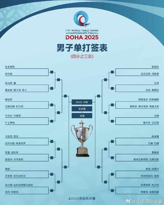2025多哈世乒赛国乒首轮对阵完整签表如下: