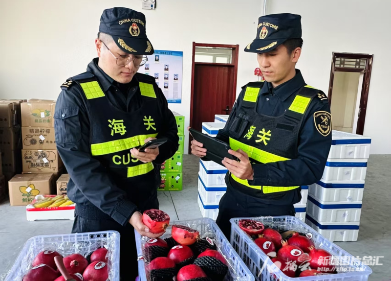3月15日,霍尔果斯海关关员对出口果蔬进行查验。刘兴阳 摄