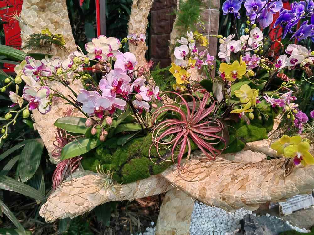 “空谷幽兰”“兰蕨秘境”“兰花小筑”等多个兰花艺术展区同步焕新,百种兰花编织成一幅绚烂多彩的兰花图谱,为市民游客带来一场“花花盛宴”。其中引进的新品——紫色马卡龙蝴蝶兰极为吸睛,姿态各异的兰花色彩缤纷,与蕨类植物相映成趣。展区还有许多由园艺师精心培育历经四季更迭的百盆兰株,如鼓槌石斛、香水石斛、泸水兜兰、魔帝兜兰等复花开放的“时光见证者”。