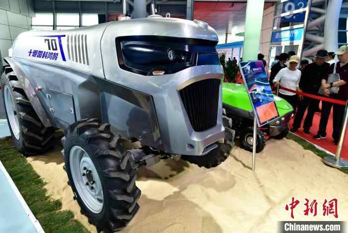4月30日,搭配智能电控系统、科幻型外观和智能无人驾驶作业系统的电动智能拖拉机吸引参观者。中新社记者 张斌 摄