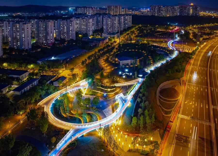 航拍雨花数据线公园夜景。雨花台区融媒体中心供图