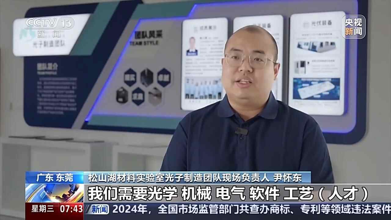 松山湖材料实验室光子制造团队现场负责人 尹怀东:我们需要光学、机械、电气、软件、工艺人才,甚至现在我们需要AI的人才,来组成一个“赛手”,来驾驶这一辆产业化公司的“赛车”,去驰骋在钙钛矿的赛道上面。