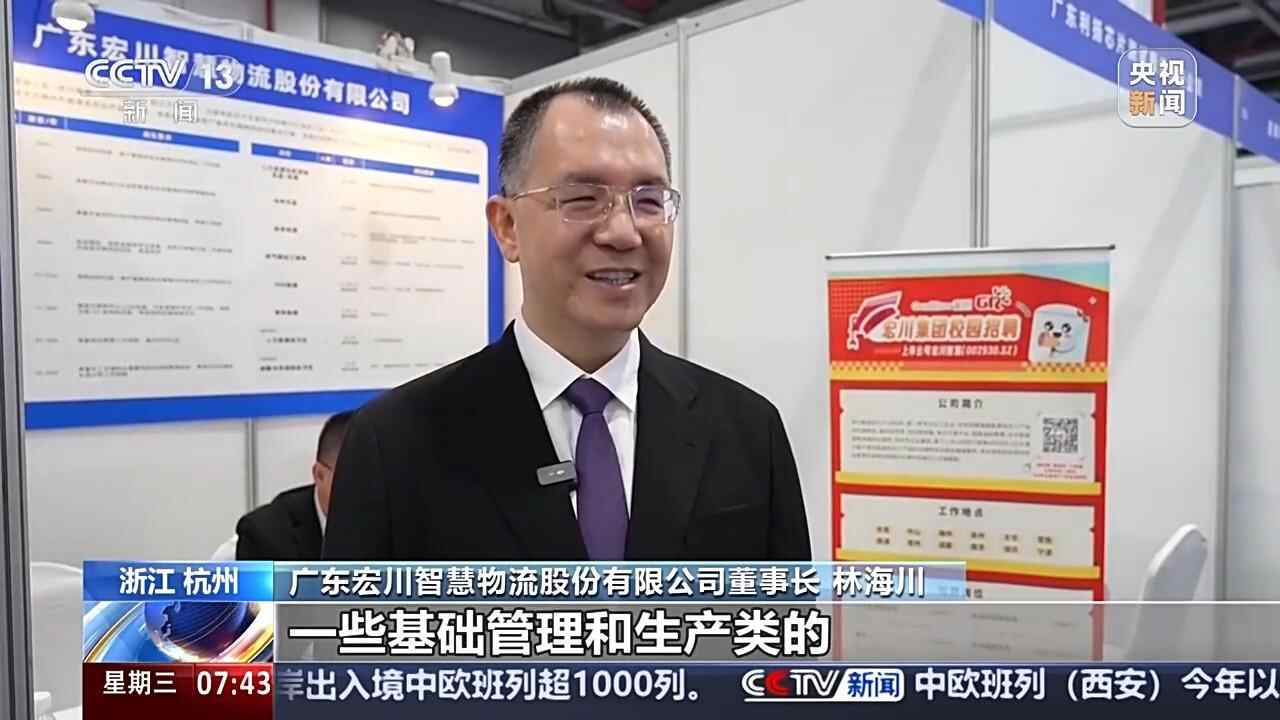 广东宏川智慧物流股份有限公司董事长 林海川:过去我们更多是招聘一些运营、基础管理和生产类的岗位为主,现在更多的是希望利用数字化的手段、利用智能化的工具来提升效率,提升企业的竞争力。