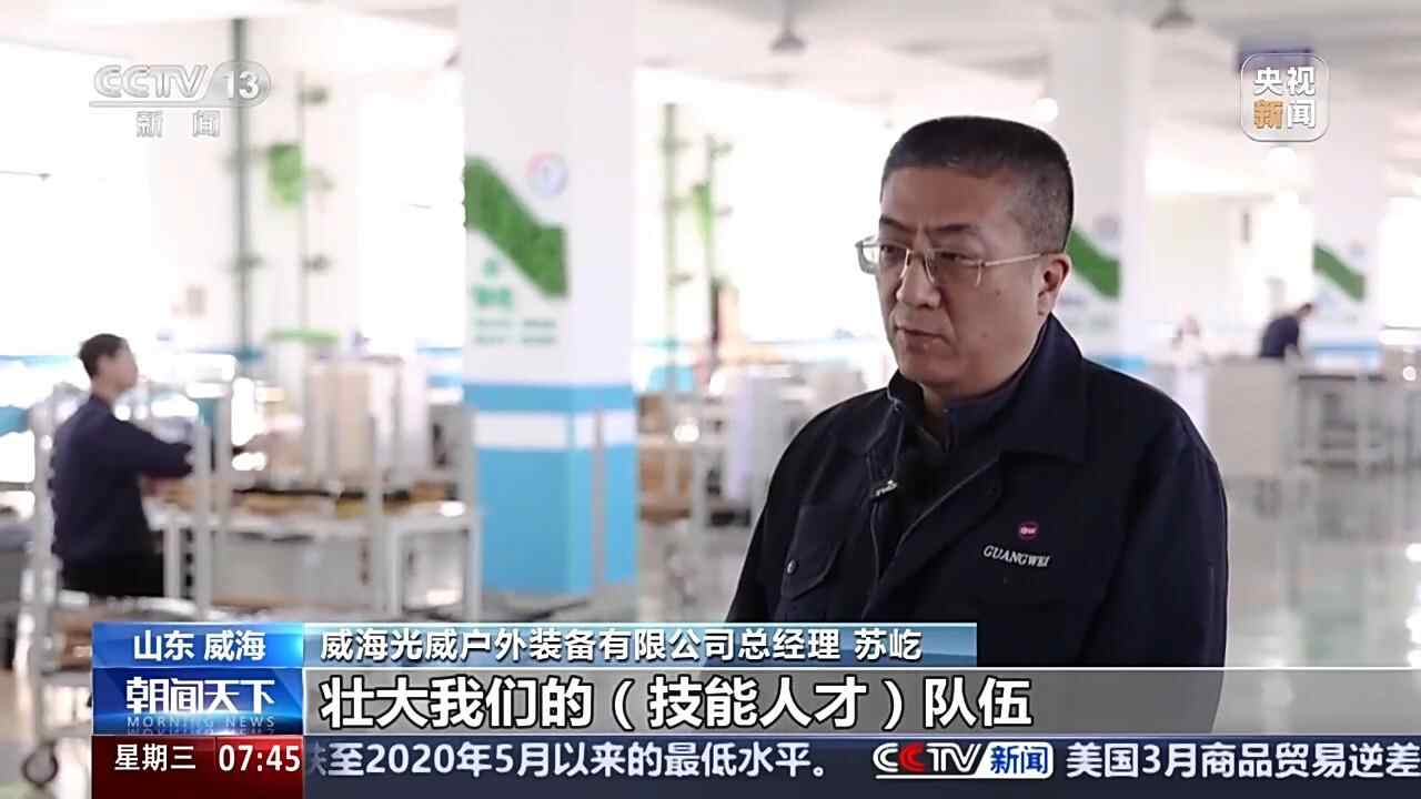 威海光威户外装备有限公司总经理 苏屹:政府能够及时地出台这种政策,我们就有更大机会把这些人留住,壮大我们的技能人才队伍。