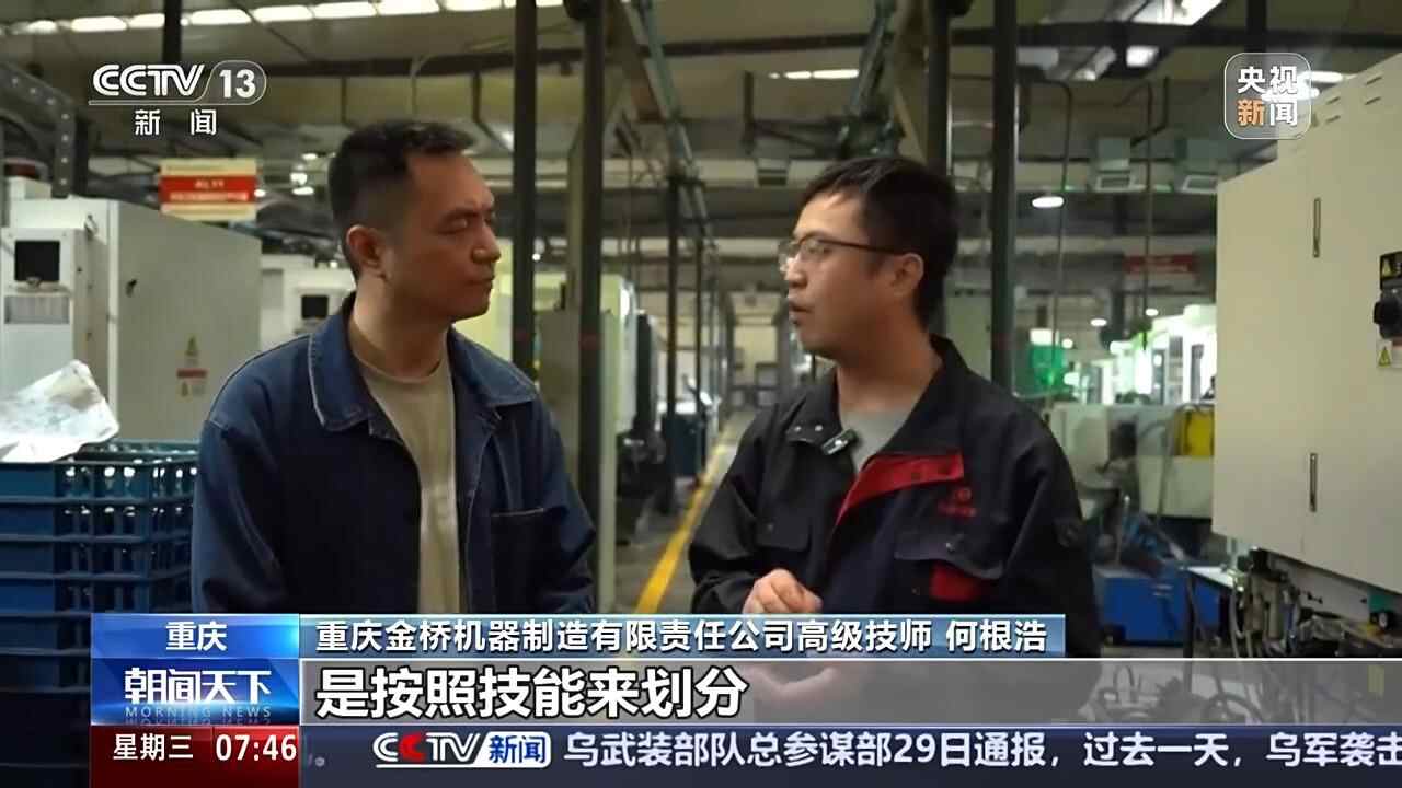 重庆金桥机器制造有限责任公司高级技师 何根浩:原来我们的工资是按照岗位工资加绩效,现在是按照公司新出的规定,是按照技能来划分,基本上每提升一个等级,月收入就要多四百到五百块钱,现在我的收入就跟公司的副总差不多了。