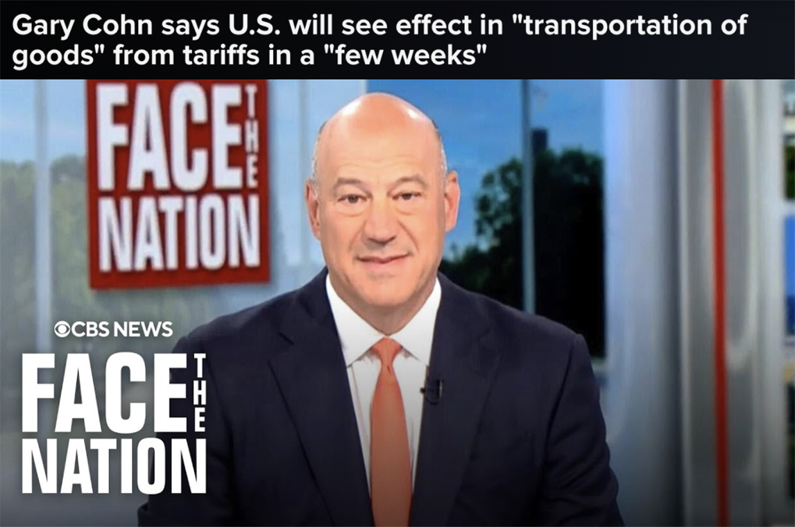 在特朗普第一个总统任期出任过总统首席经济顾问的加里·科恩日前在接受美国哥伦比亚广播公司采访时表示,鉴于进口商品的分销周期约为8周,这意味着美国政府4月初宣布的所谓“对等关税”的实际影响将在5月底开始显现。