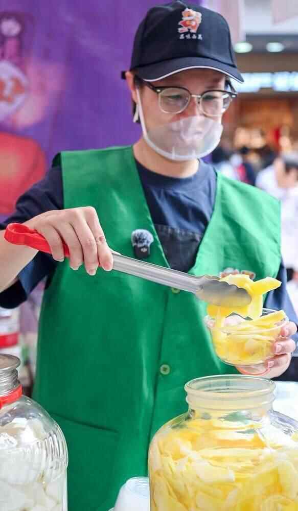 广州市级非遗代表项目“西关礼饼制作技艺”的保护单位——赞记礼饼在这次美食文化节带来了嫁女饼、猪笼饼、鱼仔饼、寿星饼、鸡仔饼、杏仁饼等特色礼饼。赞记礼饼是始于1909年的老字号,坚持手工揉面,传承广府口味。特别是嫁女饼,不仅将西关婚嫁习俗化作可携带的文化符号,也成为消费者喜爱的热门伴手礼。