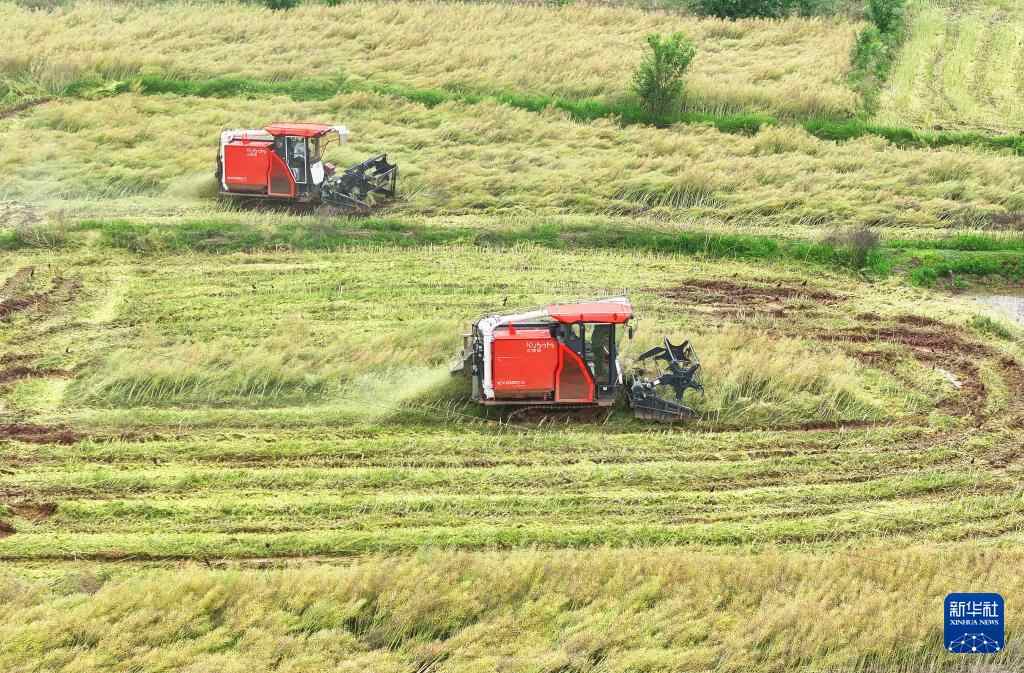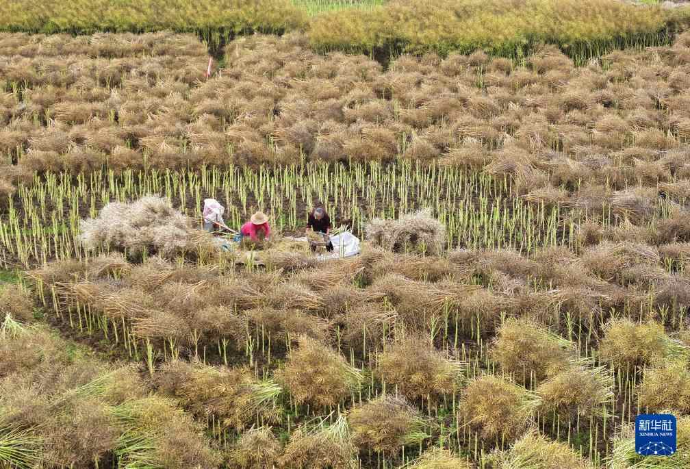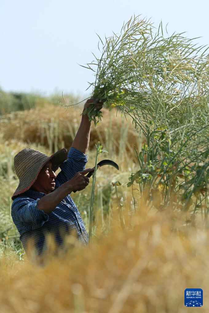 近期,我国部分地区油菜进入收获期,农民抢抓农时,收获油菜。