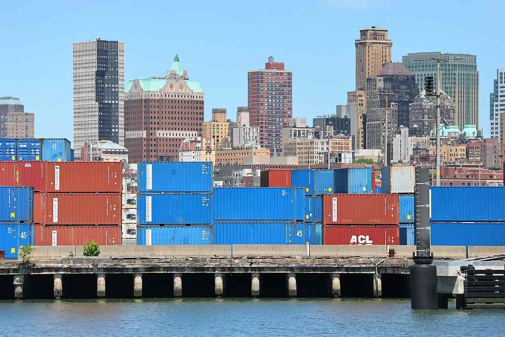 当地时间2025年4月30日,纽约市红钩集装箱码头堆放的集装箱(图自视觉中国)