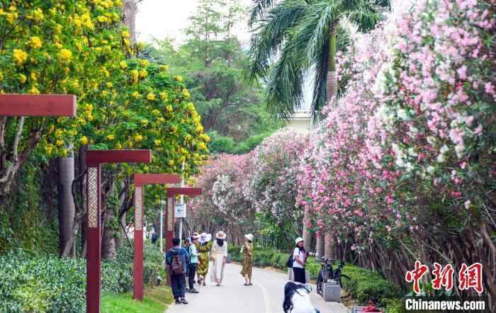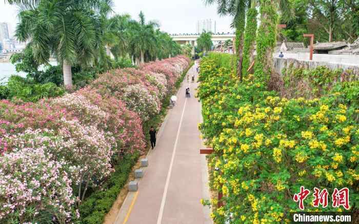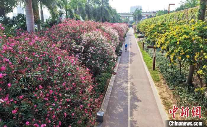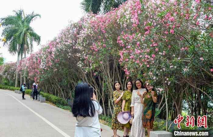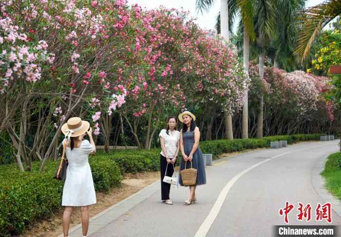图为盛开的夹竹桃为城市添美景。傅永顺 摄