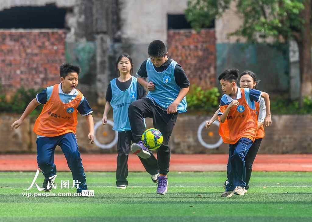 近年来,湖南省永州市道县中小学校幼儿园积极打造体育特色大课间,利用大课间、体育课等时间开展趣味游戏、跳绳、球类等特色文体活动,让学生们在运动中愉悦身心、增强体质。蒋克青摄(人民图片网)