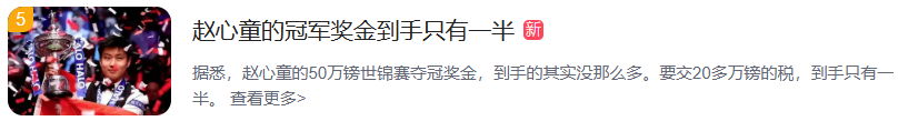 5月7日,话题“赵心童的冠军奖金到手只有一半”冲上热搜。