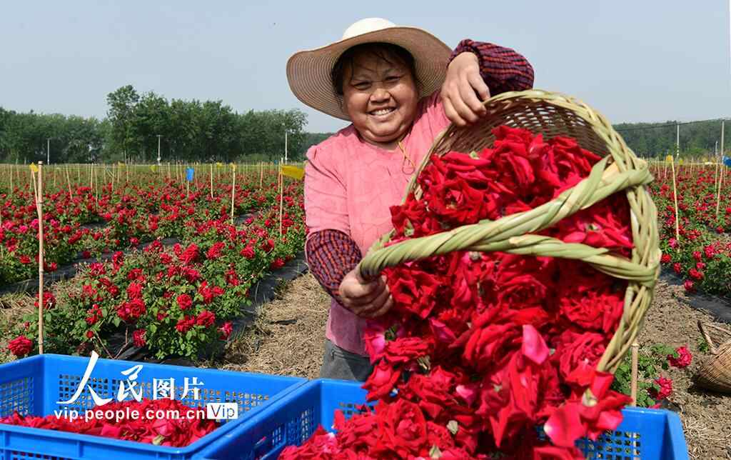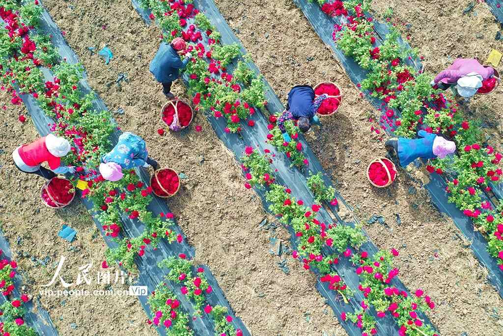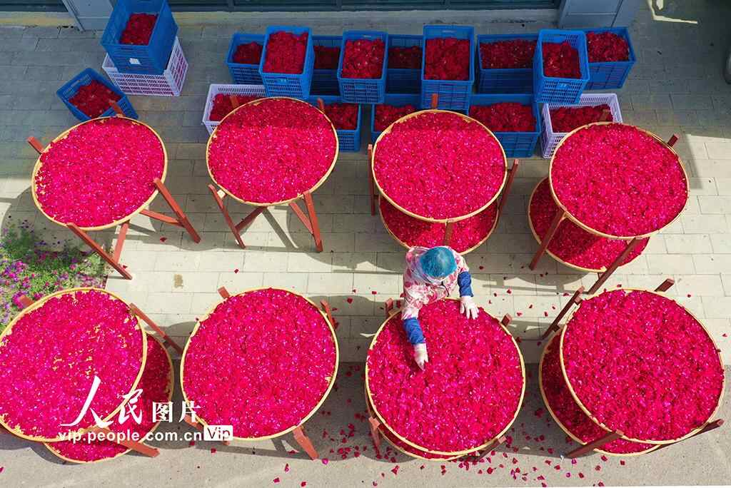 近年来,当地引导村民大力发展玫瑰种植及加工产业,玫瑰产业增添乡村“颜值”,助力富民增收。刘彬摄(人民图片网)
