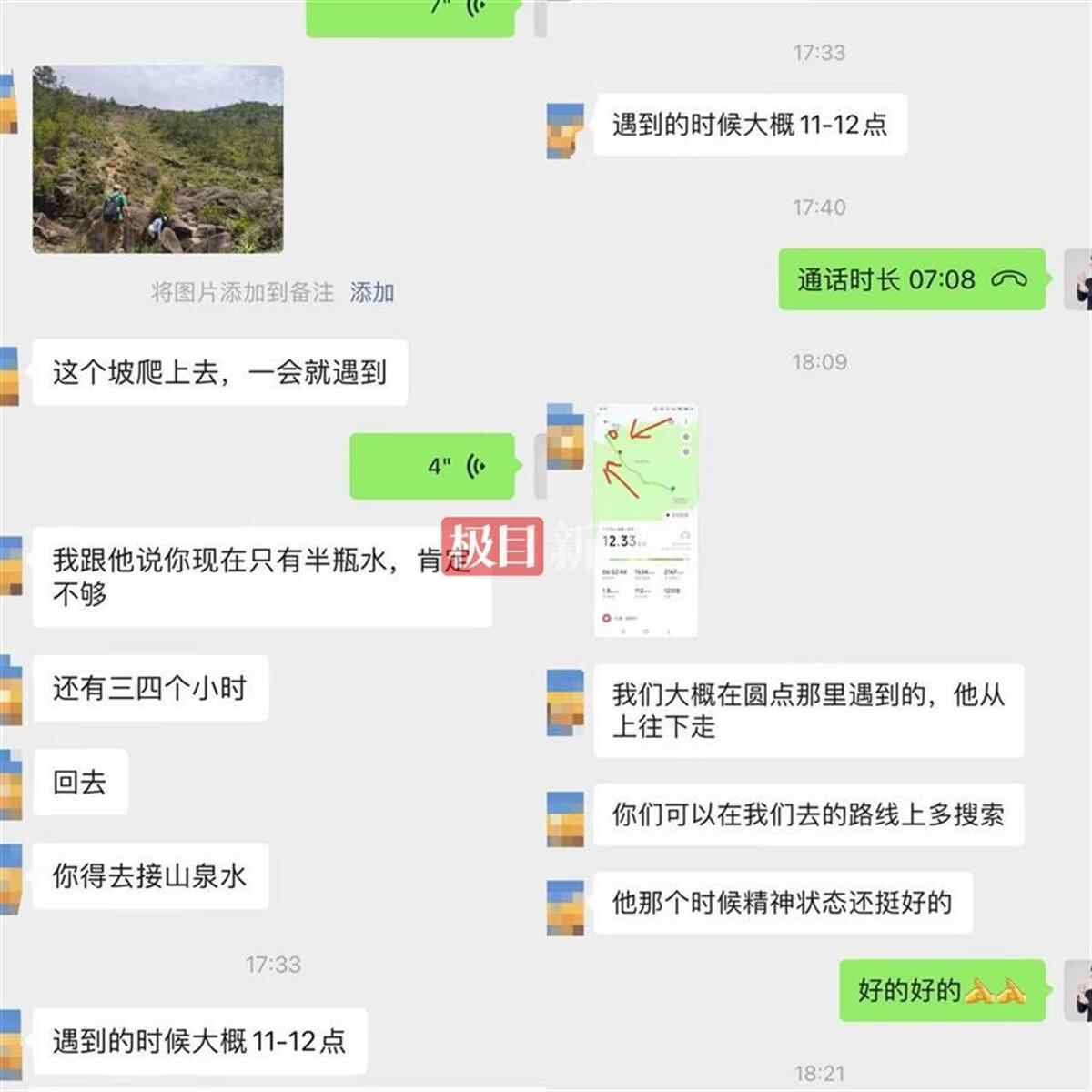 7日上午,黄慧强告诉记者,6日有一个驴友联系他,说见到一个穿黑衣服的人很像他表弟。3日中午12时左右,那名驴友在一个坡上遇见过。驴友看见黑衣男子手里拿着半瓶水,提醒他回去还有三四个小时路程,半瓶水不够喝,建议他去打点山泉水。那名驴友表示,遇见黑衣男子的时候,对方精神状态挺好的。