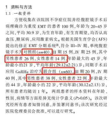 该论文名为《腹腔镜联合GnRH-a对不孕伴重度子宫内膜异位症患者的疗效》,并收集了在该院的100例患者样本。在样本病例中,男性患者达64例。