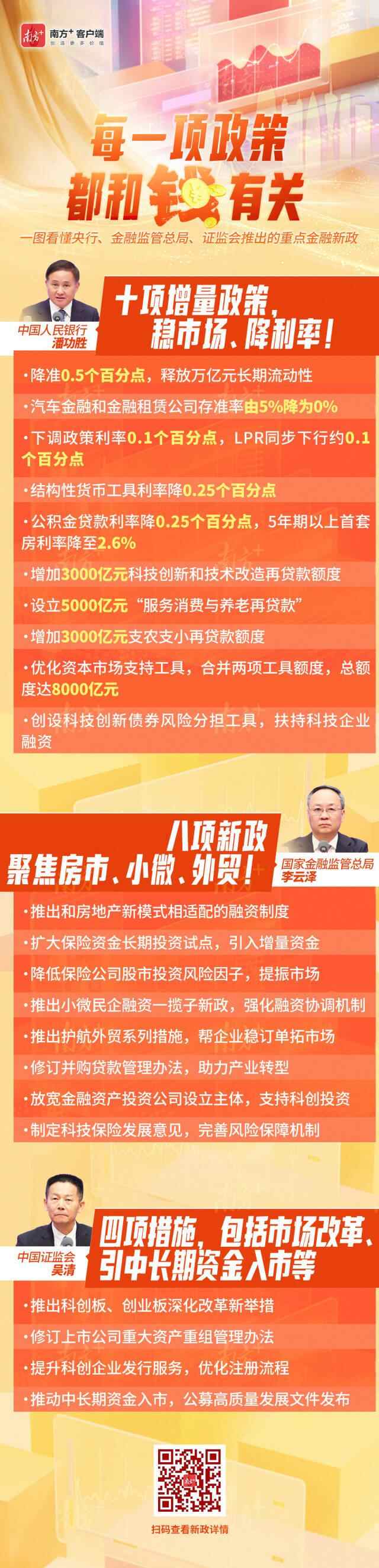 中国央行行长潘功胜、国家金融监管总局局长李云泽、中国证监会主席吴清分别带来了一揽子增量政策。