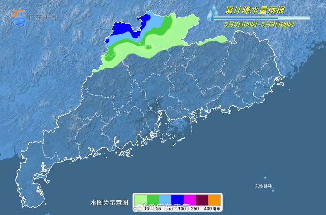 ◆8日,韶关、清远和肇庆北部市县多云转中到大雨局部暴雨,局部伴有8~10级雷雨大风和局地小冰雹等强对流天气,其余市县多云,有分散(雷)阵雨。