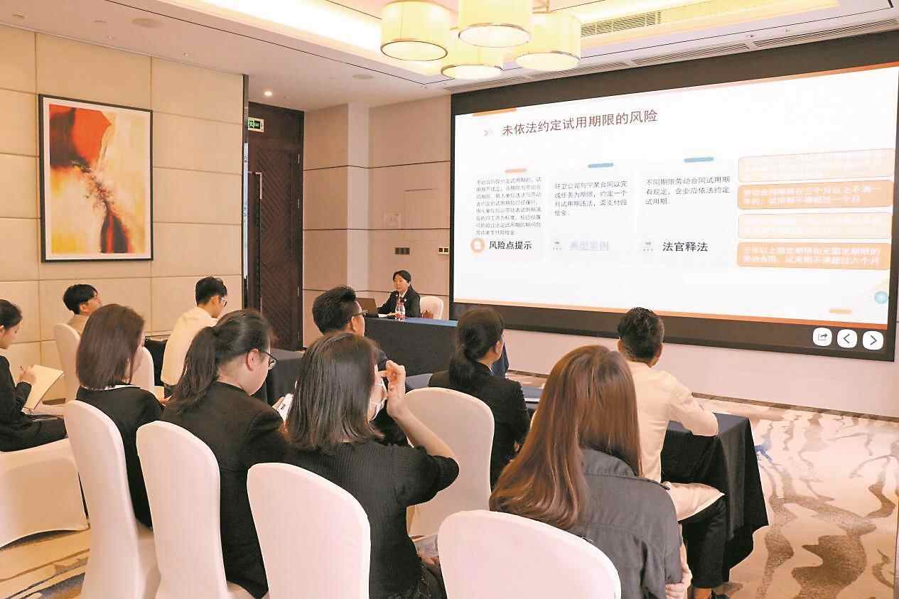 活动中,法官聚焦用工全流程风险,深度解析员工招录、试用期管理、合同签订、考勤制度、岗位调整等关键环节的28项法律风险点。针对企业关注的“录用条件如何合法设定”“加班费计算基数”等实务痛点,结合《中华人民共和国劳动合同法》相关条款进行靶向解读,为企业提供从入职到离职的全周期用工指引。此外,对规章制度民主程序瑕疵、调岗合理性争议、未休年假补偿等高频争议点进行专项解读,为企业开出“完善制度公示流程”“建立动态年假台账”“强化证据留存意识”等12项“处方”。
