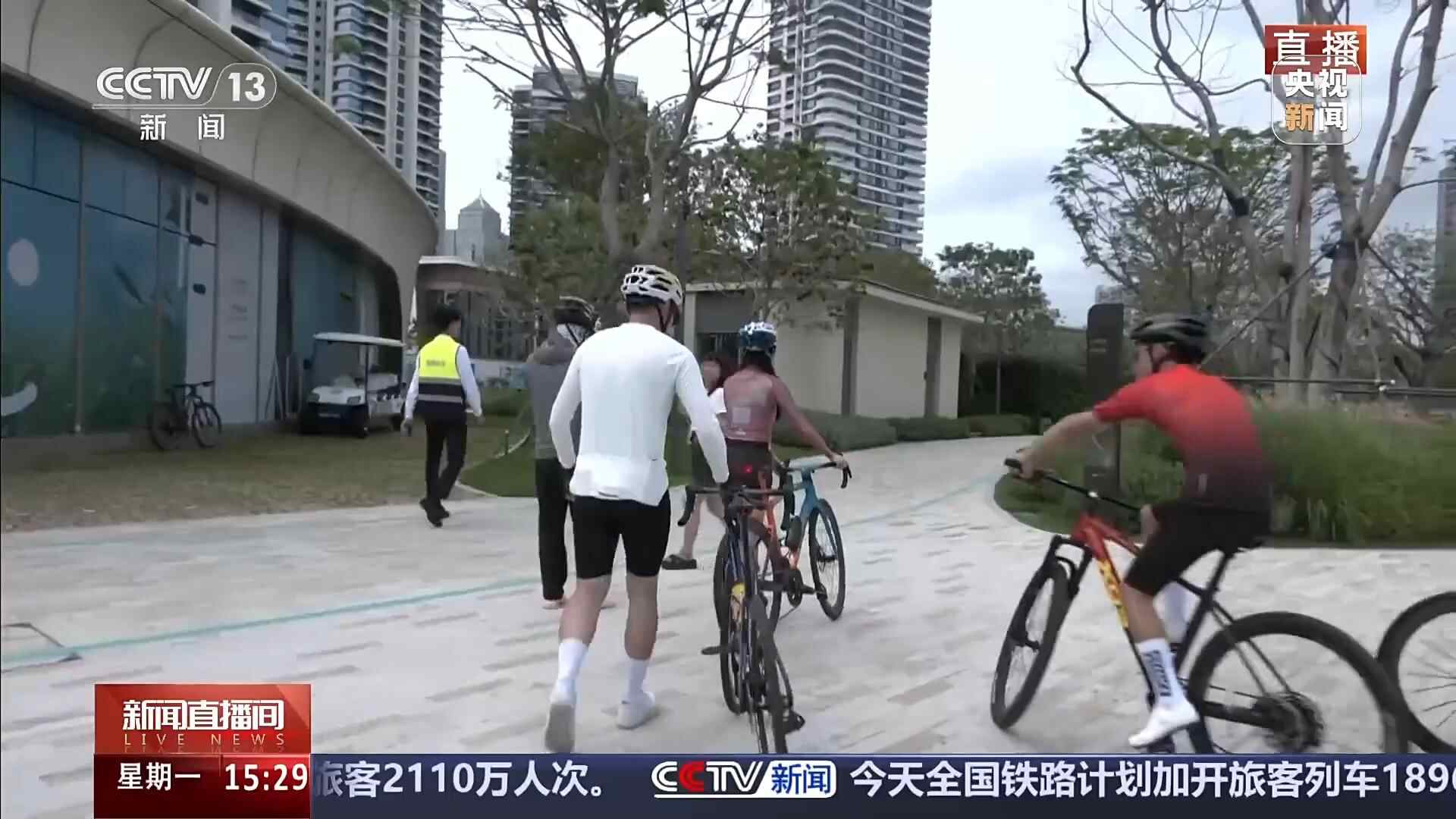 总台记者 何俊儒:我现在正在深圳的西部滨海骑行道,“五一”期间这里成为许多骑行爱好者的热门聚集地。在画面中大家就能看到,我们旁边已经有不少骑行者,组队前来骑行游玩。
