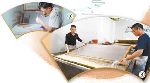 据粗略计算,宣纸传统工艺有100多道工序,可分成原料、制浆与成纸三部分。先将“有形”的檀皮和稻草变成“无形”的纸浆;再通过配浆、捞纸、晒纸、剪纸、包装等成纸工序,将“无形”的纸浆变成可以使用的宣纸。其中大部分工艺至今无法使用机器替代。从原料到宣纸成形,需历时3年。