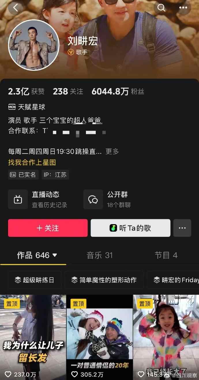 数据显示,自强制清场事件后,刘畊宏多平台处于掉粉状态。4月27日其抖音粉丝达6067.91万,截至发稿前粉丝数降至6044.8万,九天累计掉粉23.11万。值得一提的是,其账号评论区状态为“仅允许互关朋友评论”。