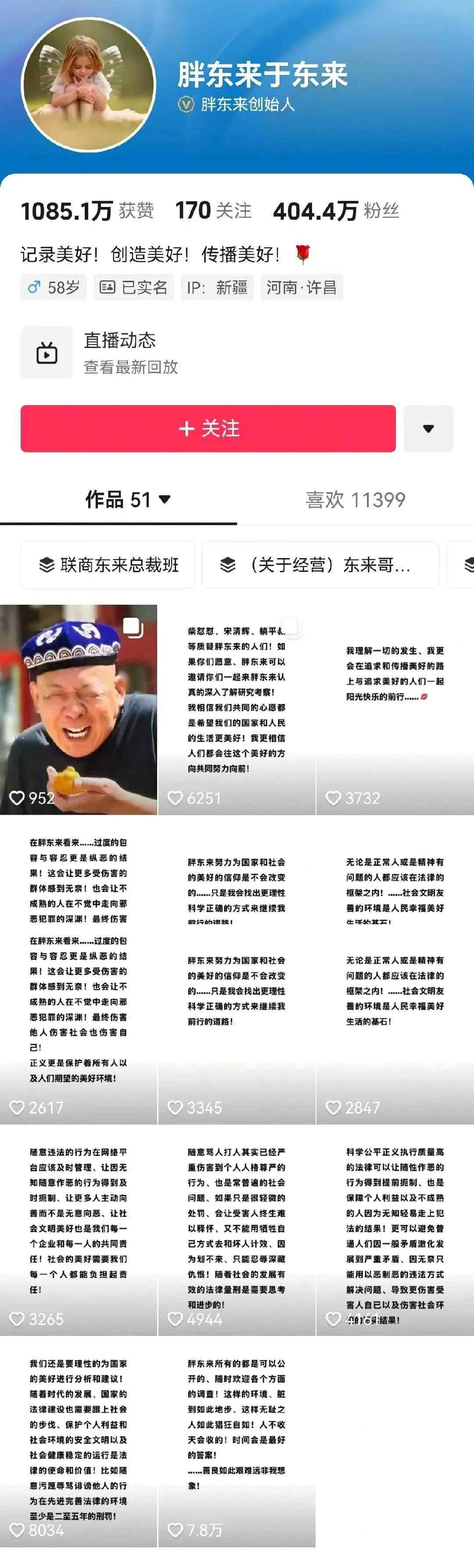 5月6日,胖东来创始人于东来在抖音连发10条动态,公开邀请柴怼怼、宋清辉、躺平叔等人前来深入研究考察。