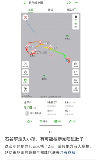 △网友担心山上有蟒蛇