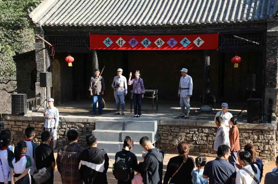 据介绍,“跟着团长打县城”项目的演员多为景区工作人员和当地村民。“团长”扮演者曾在采访中表示,家里有三代人是当兵的,虽然自己没当过兵,但做“团长”也是圆了梦。“每次结束虽然有点累,但也会想当年前辈在枪林弹雨中是怎么做到的。能得到广大游客的认可,感觉这个项目还是很有意义的。”