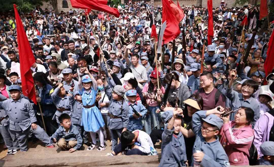 据了解,“跟着团长打县城”还原了1941年抗战时期的情景,整场体验约25分钟。每场体验有几千名游客作为“报名参军”的群众进入景区,他们先参与“战前动员”,然后三支“八路军连队”汇集到城墙下,在“团长”的带领下向“县城”发起总攻。