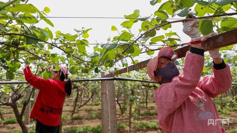 央广网宝鸡5月3日消息 眼下,在陕西省宝鸡市眉县金渠镇宁渠村的猕猴桃种植示范园内,果农们正在猕猴桃园子里忙碌着,以致富道路为画轴,一幅果园忙碌的图景在秦岭北麓徐徐展开。
