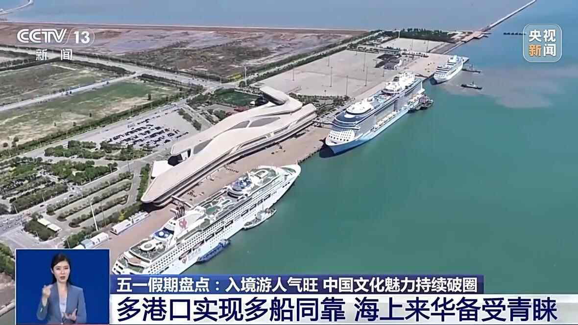 自去年5月实施外国旅游团乘坐邮轮入境免签政策以来,持续吸引着外国游客体验这一来华旅游新方式,这个“五一”假期,上海迎来了四船同靠的盛况,天津、大连、山东等地的港口的入境外国旅游团纷纷创下了历史新高。