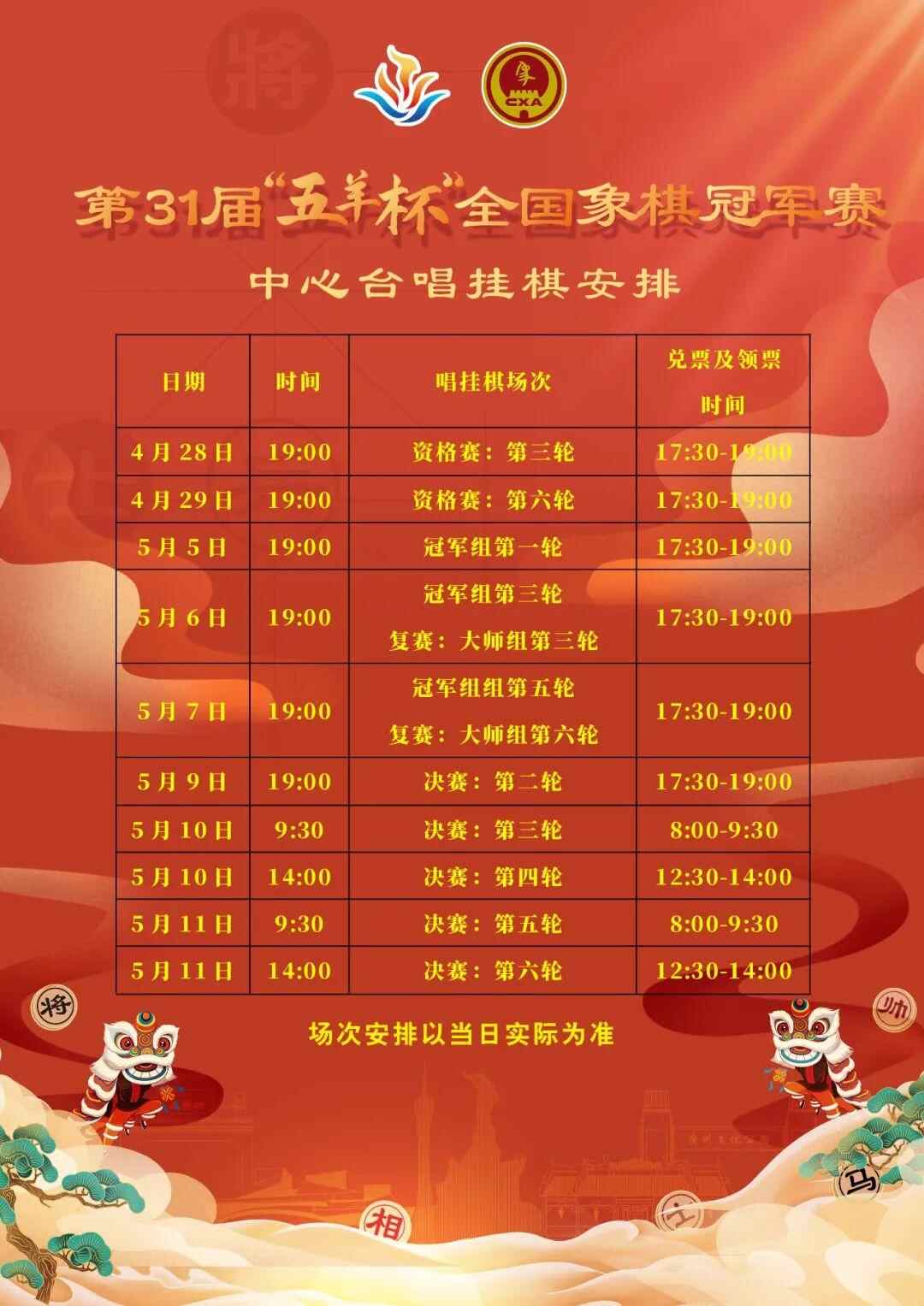 中心台唱挂棋进场门票将通过“部分线上预约(线下兑票)”、“部分线下免费领取”两个途径免费向棋迷派发。