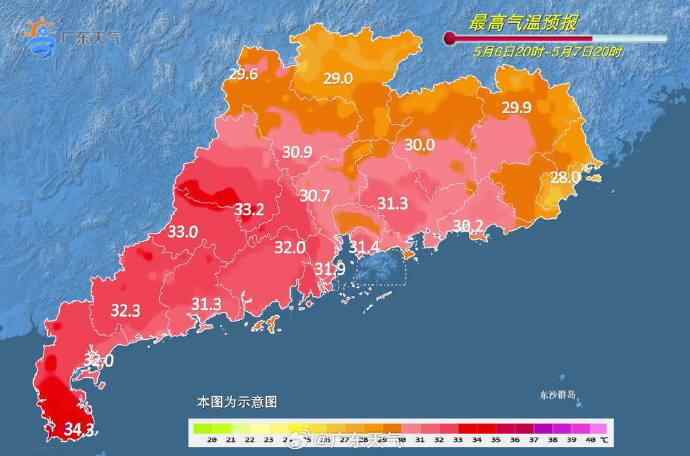 8日夜间-9日白天,中北部市县雷阵雨转大雨到暴雨,局部大暴雨,其余市县多云转中雷雨局部暴雨。最高气温:粤北偏北市县25℃~28℃,粤西市县32℃~34℃,其余市县28℃~32℃。