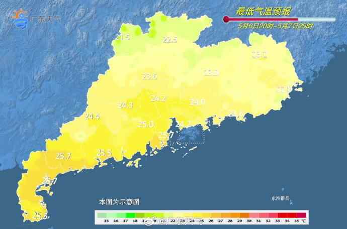 7日-8日白天,中北部市县阴天到多云,有中雷雨局部大雨或暴雨转雷阵雨,其余市县多云到阴天有分散(雷)阵雨。最高气温:广东东部偏东市县28℃~31℃,其余大部分市县31℃~34℃。