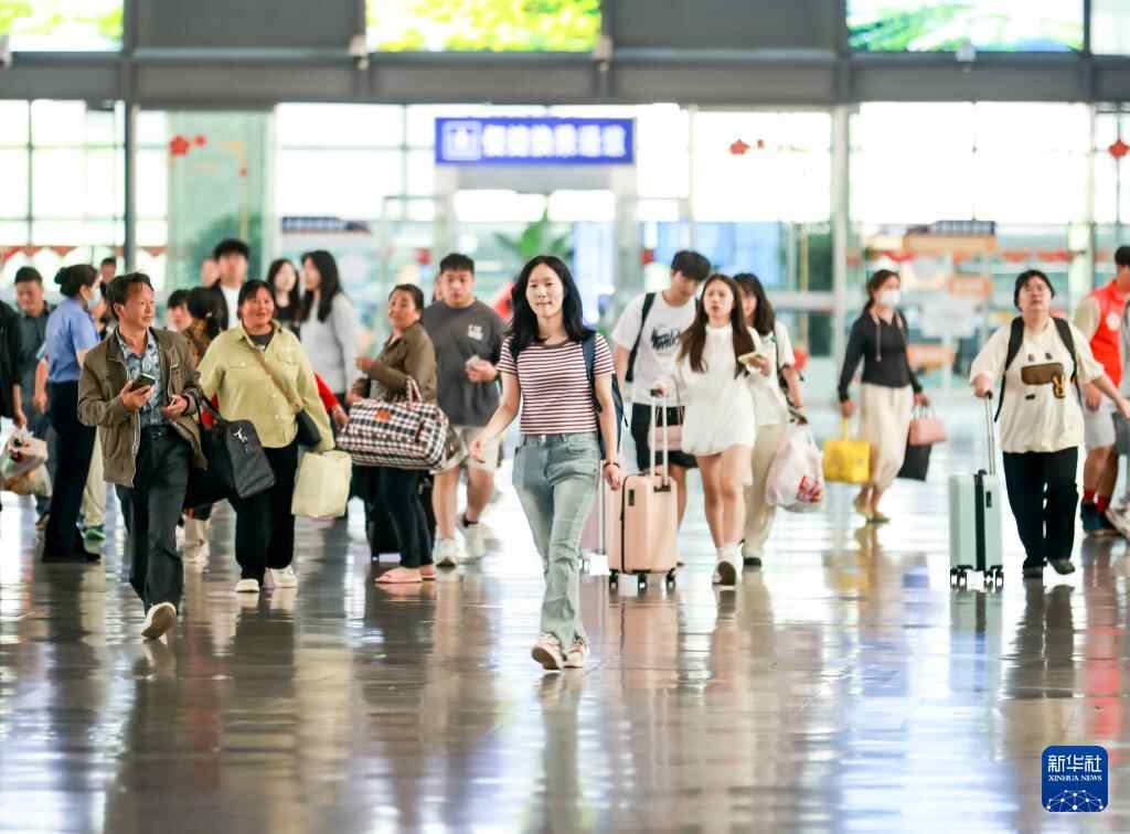 5月4日,旅客在湖北省武昌站准备乘车出行。